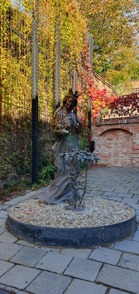 Picture 1 : This statue represents the Queen of the Czech Republic 700 years ago, it is made of copper and the flowers represent purity (lys).