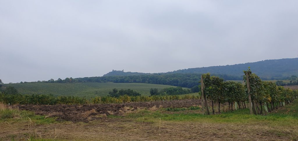 Picture 2 : In the afternoon, with Czechs and an old man, we went to the vineyards to see the castle of 3rd century at the top of the mountain. The man told us legends and its history. Since his retirement, he climbs the mountain every day.