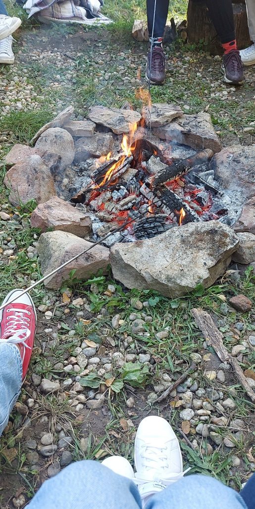Today, we are going in the country house hat belonged to a Czech student. We cut wood to make a fire. We then ate Czech sausages with bread and listened to music with them. We listened to French and Czech music. I talked to some Czechs and they had brought their dogs. I had a great day of conviviality and joy. I found that they were welcoming and included us in their group. Good bye.