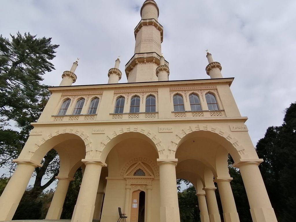 We arrived at the entrance to the castle and the amazing architecture with wonderful sculpture. And then we visited the little garden where everything was well pruned with fountains and beautiful trees. Then we went to a small port where we took the boat to get to the side of the minaret and then we returned to the castle crossing bridges and beautiful landscapes with an almost empty lake. I found this unforgettable moment with its magnificent landscapes and the almost empty lake