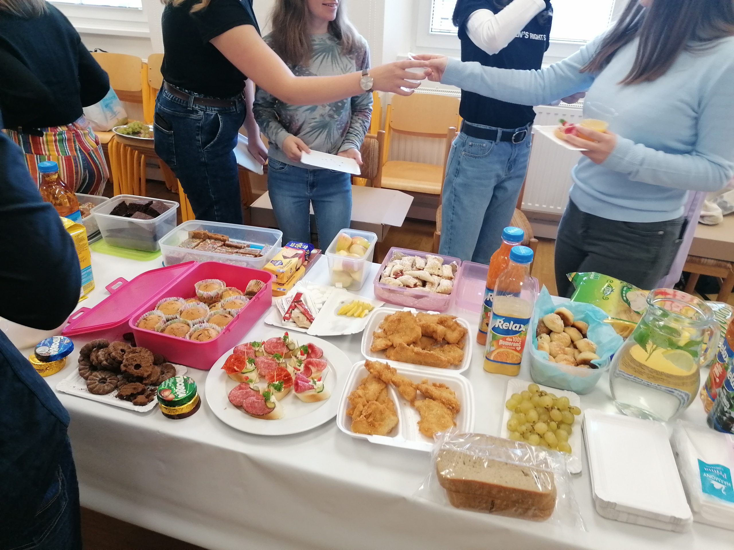 Arriving in the class, we were warmly welcomed by the Czechs and then we tasted what they prepared for us as their traditional meal which is the chicken panner, but I had too much to eat, so I had a full stomach , but otherwise the food was very good, apple juices and the other drinks were very good too, I very like this moment because it's friendly