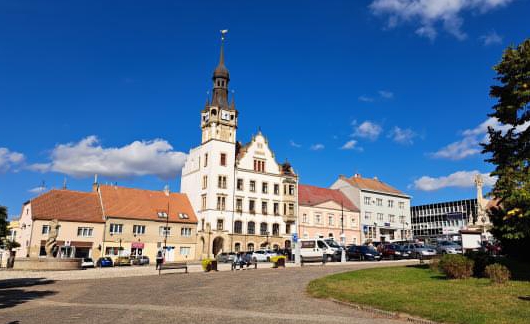 The town hall of hustopeche has three floor and she has a Bell.